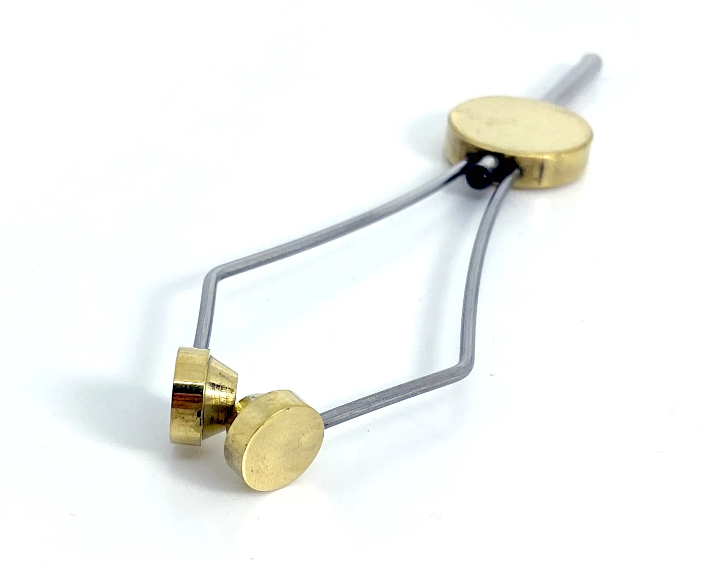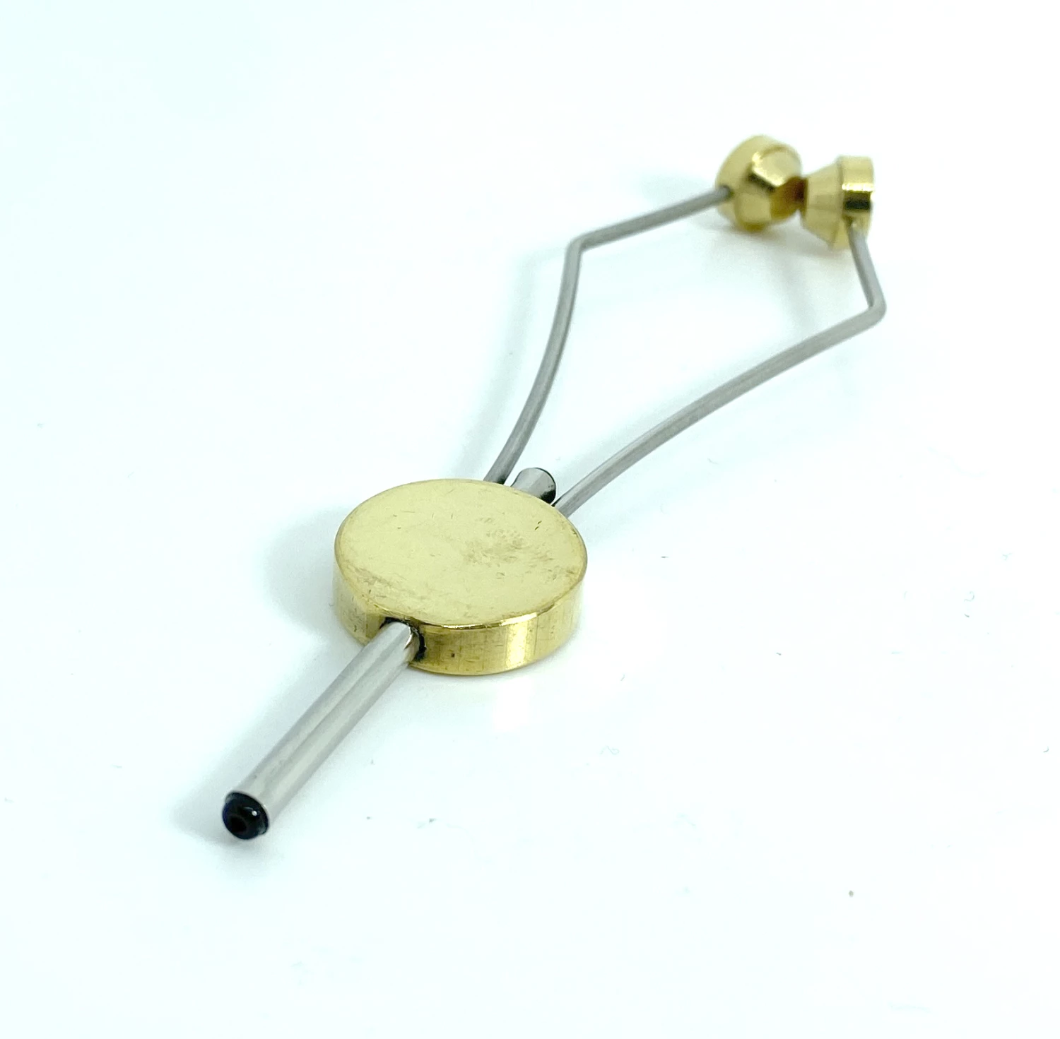 Bobbin holder with tube flared at both ends and brass disc for an easy comfortable grip while tying. Will take most sizes of bobbin.