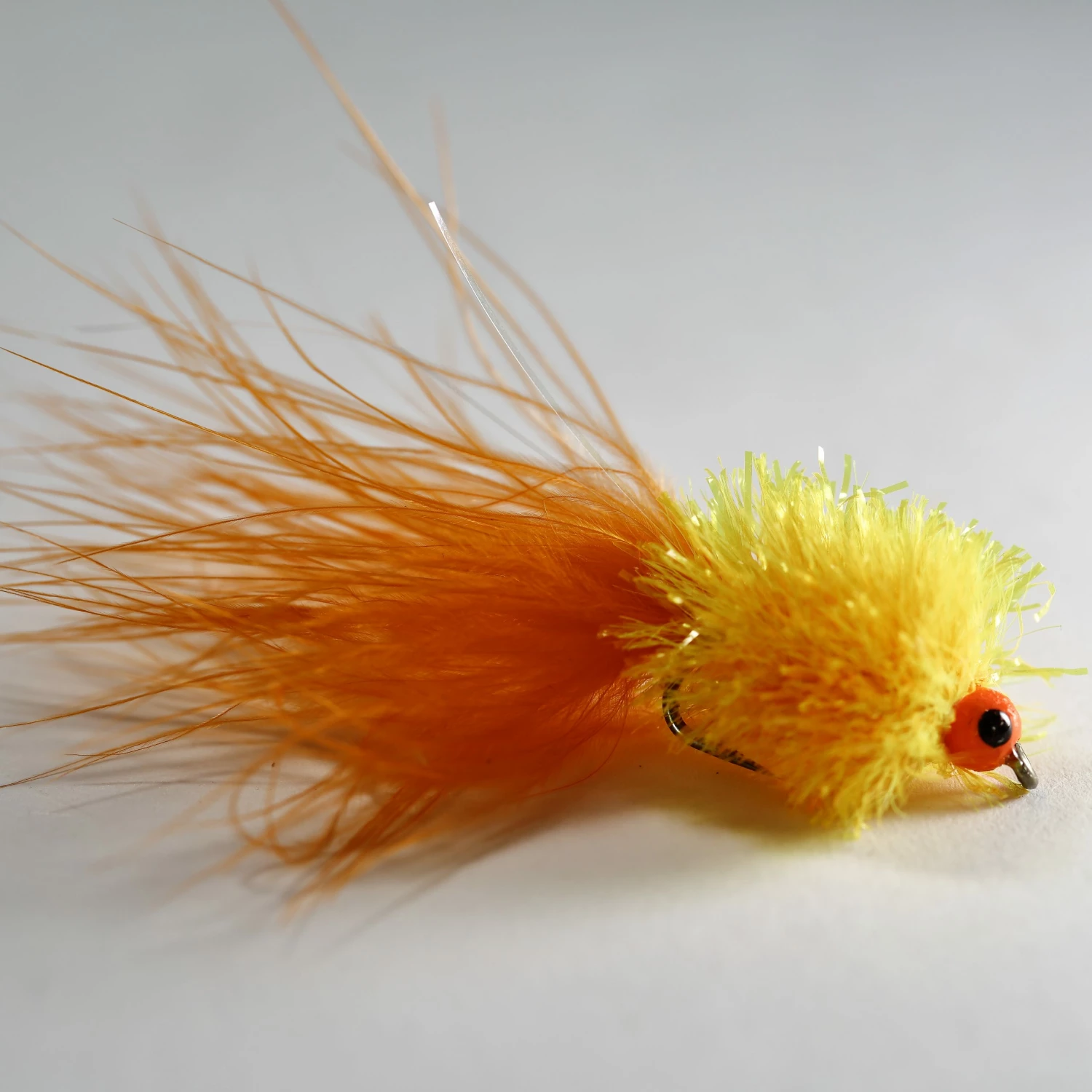 An Orange Coloured Frtiz, these flies work superb when fished in various rates of retrieve. One key thing to remember is the darker the Frtiz is, the slower it must be retrieved. Brighter coloured Frtiz can be stripped quicker at a more constant retrieved