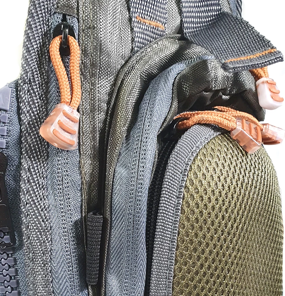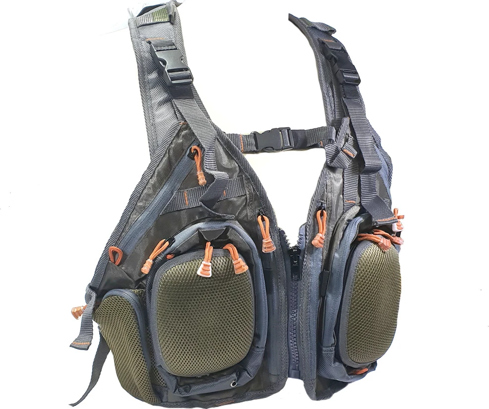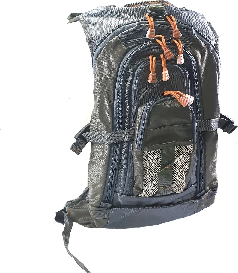 This is a superbly functional Rucksack with a detachable Vest at the front which has a multitude of pockets and compartments for storing tools, fly boxes and small essentials. The Rucksack has various pockets of different sizes for storing more small bits and some larger items. The vest can be detached from the rucksack by releasing the buckles found on the shoulder straps and waist straps.