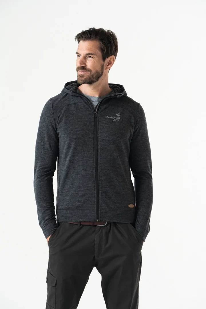 Merino wool is extremely soft, easy to wear, and offers several benefits. It has a temperature-regulating and odor-inhibiting action, keeping you warm on colder days and cool on hot days. The anthracite casual hoodie is ideal for treks and travels at any time of year, as well as for lounging at home. The merino wool comes from mulesing-free sources and is biodegradable as a natural substance.
