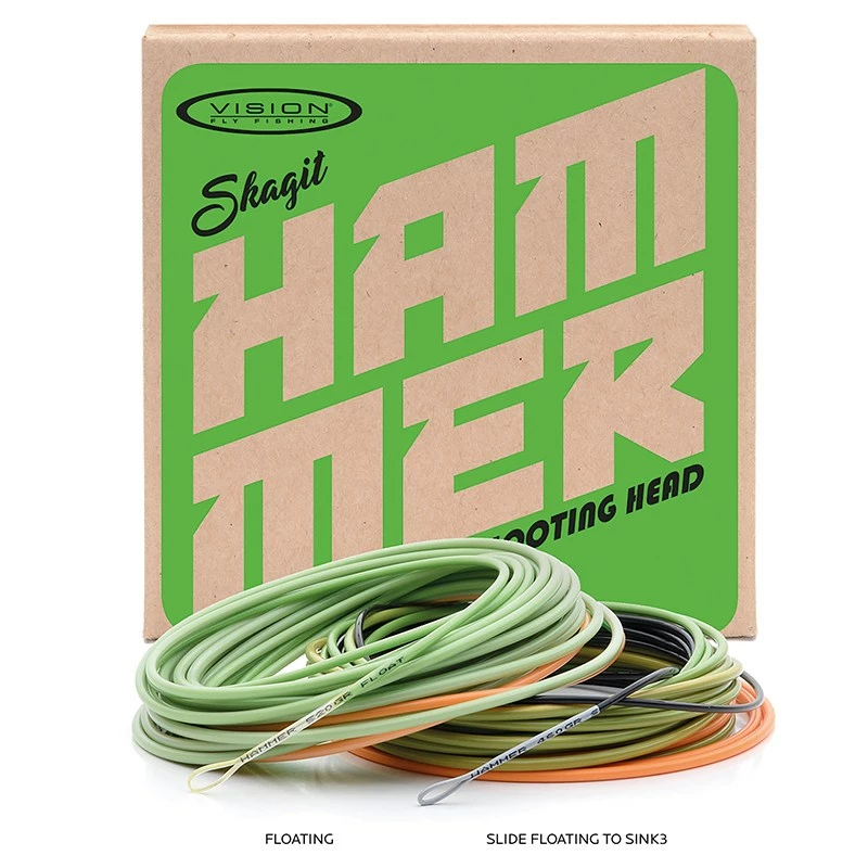 These heads will deliver long and heavy sink tips with large and heavy flies easier than anything. Hammer heads are sold as a belly only, without a tip. Tips are sold separately, and Hammer heads are compatible with Vision’s Hybrid and T-tips. All Hammer heads have ready made loops on both ends and weight & density print on the front loop.
