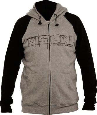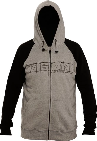 Stylish contrast sleeve hooded sweatshirt with the Vision sketch logo.