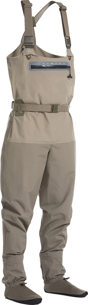 Even better than the previous. Scout 2.0 waders are made from the same revolutionary 37.5® Technology fabric as the first edition, so you know that the breathability is in the world-leading level. Vision have adjusted the cut so that these follow the same sizing as other Vision waders making it easier for you to choose the correct size. Both Scout 2.0 wader models have a fully waterproof front pocket which really keeps the water out even if you happen to take a short accidental dip (of course, the zipper needs to be properly closed).