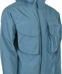 Traditional wading jacket with easy to use barrel pockets. Vector jacket is made using a more relaxed and spacious fit. It has big barrel pockets on chest with easy flap openings and one napoleon type pocket next to the main zipper. The double storm flap keeps the rain out of the zipper and the adjustable wrist cuffs can be tightened to keep the water out. The forest green colour blends nicely in without spooking the fish. The smoke blue colour with dark red details makes you disappear into the background in misty mornings.