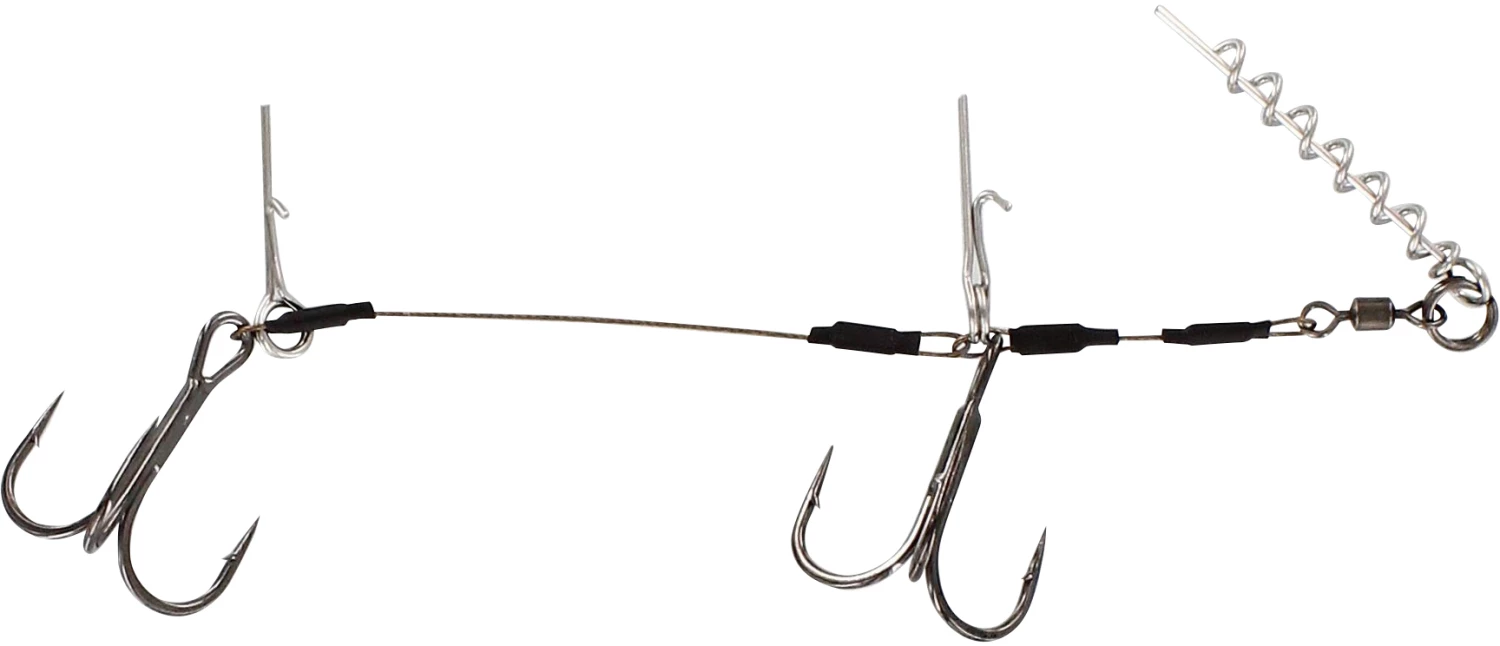 The Westin Pro Shallow Rig Double Rig is a Stinger style rigging system which attached to soft baits, designed for trolling. Tavailable in two lengths: 12cm or 15cm. The 12cm model features size 1/0 trebles, whereas the 15cm model features size 2/0 trebles.