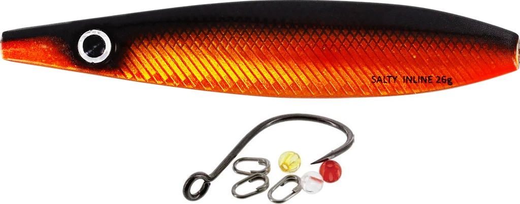 Based on the bestselling Westin lure Salty, this Inline lure has it all. It will cast far even against the hardest wind, it can be fished fast or slow, it can be used in shallow as well as deep water and it has a swimming action that appeals to trout and seabass at all times of year. Salty Inline imitates numerous baitfish on the seatrout and seabass menu and the inline system ensures a significantly better hook-up ratio.